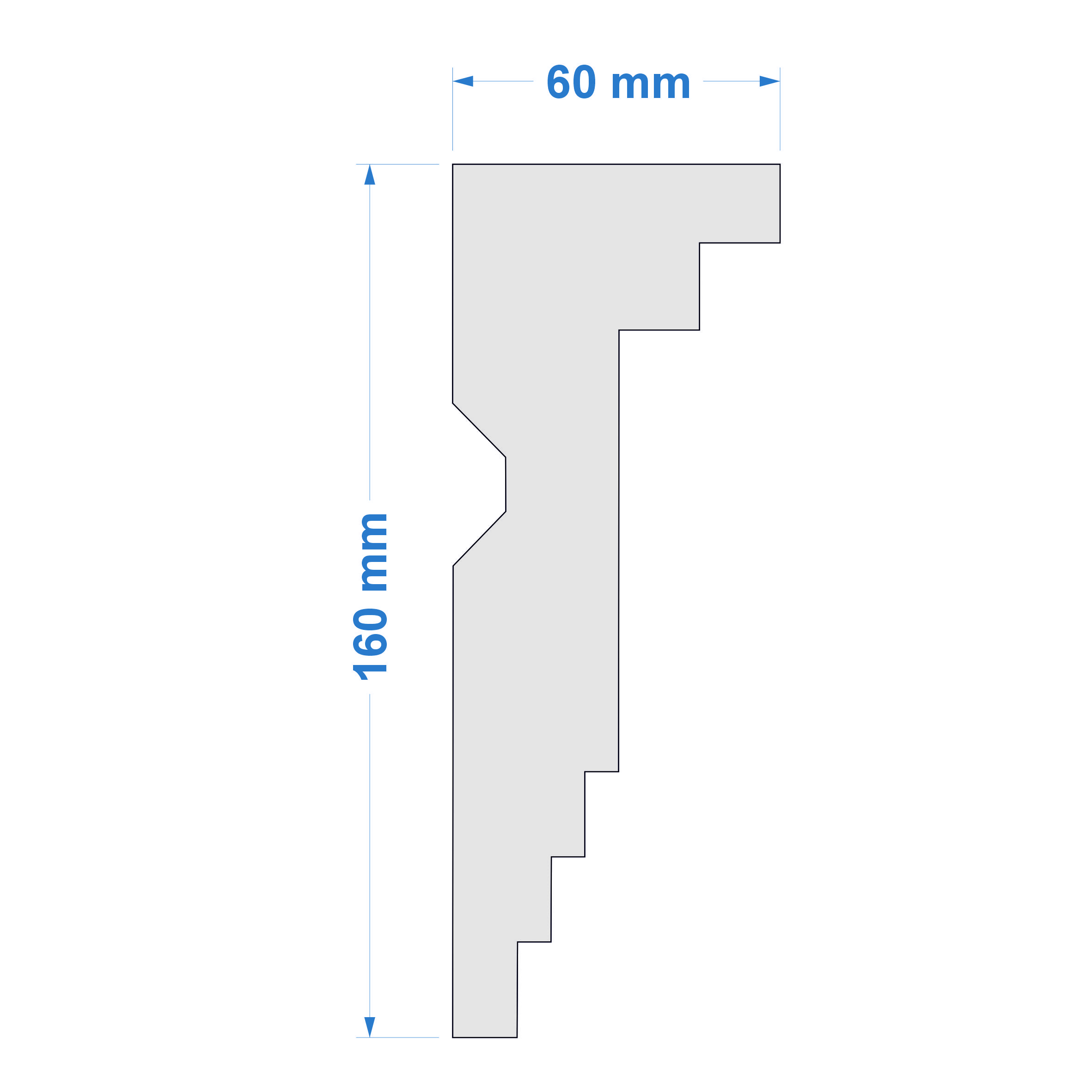 Listwa przysufitowa – wymiary: 160 mm x 60 mm x 2000 mm