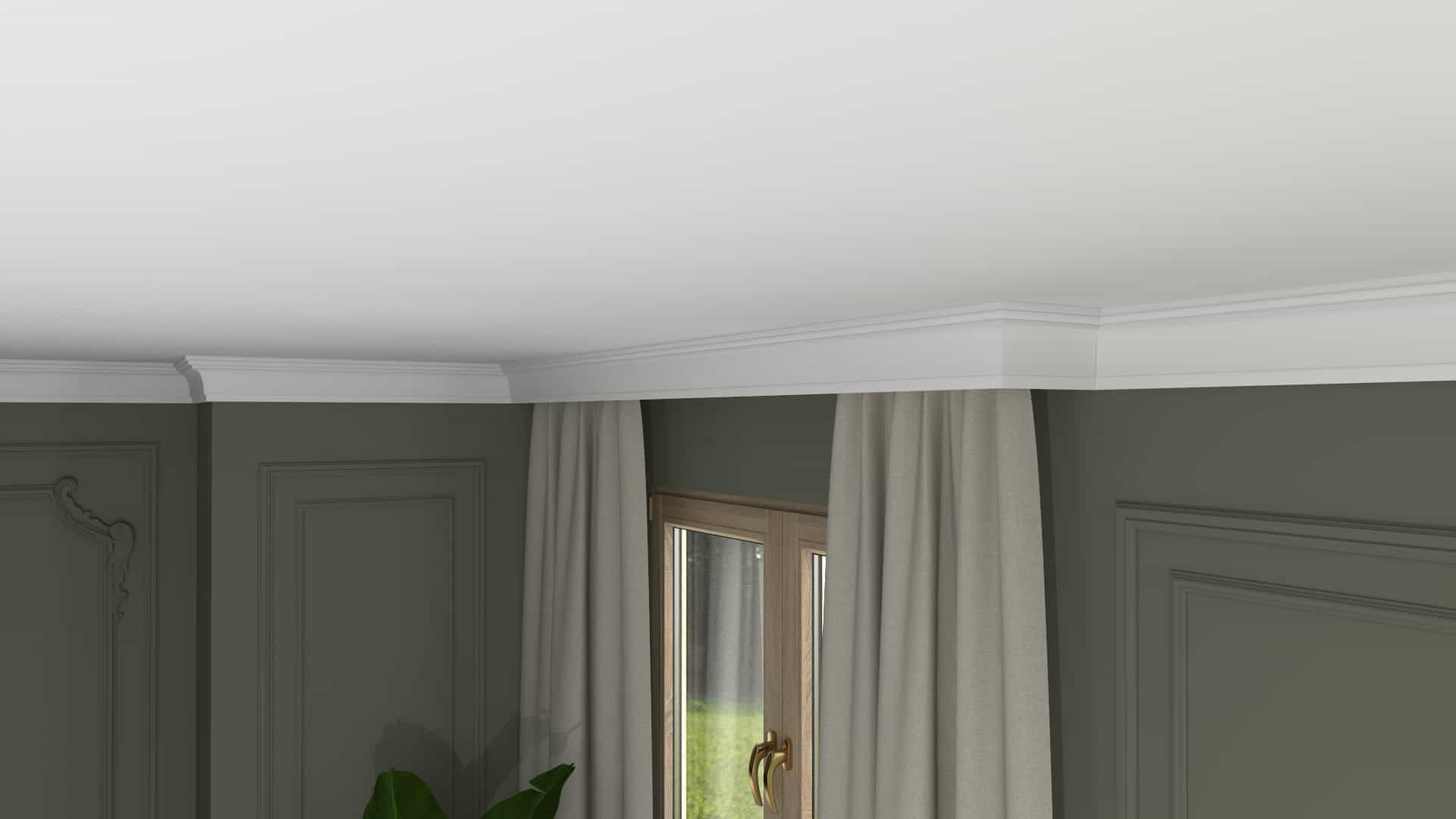 Sztukateryjna listwa karniszowa LK-19 to lekka, biała listwa wykonana z twardego polistyrenu ekstrudowanego.
