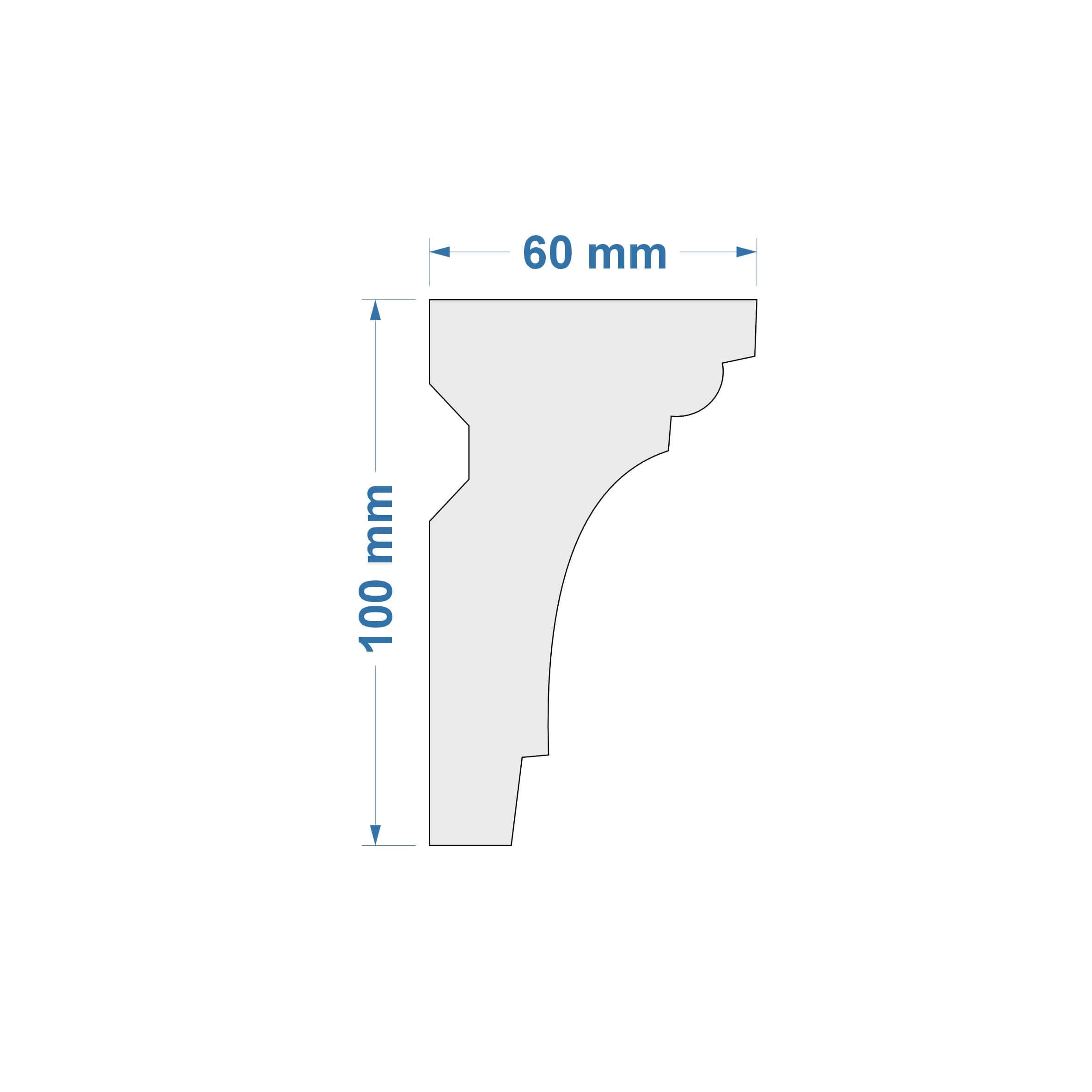 Listwa przysufitowa – wymiary: 100 mm x 60 mm x 2000 mm