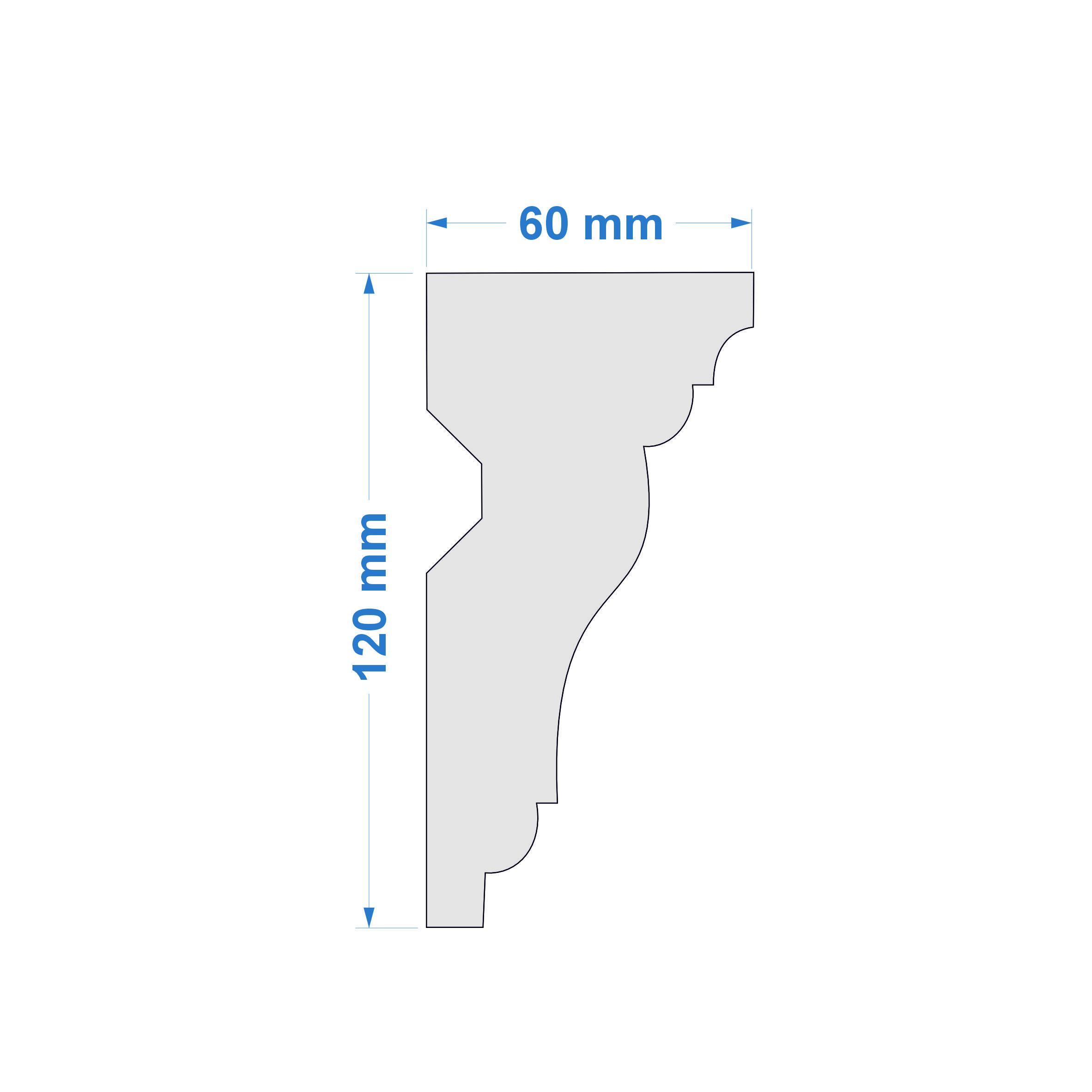 Listwa przysufitowa – wymiary: 120 mm x 60 mm x 2000 mm