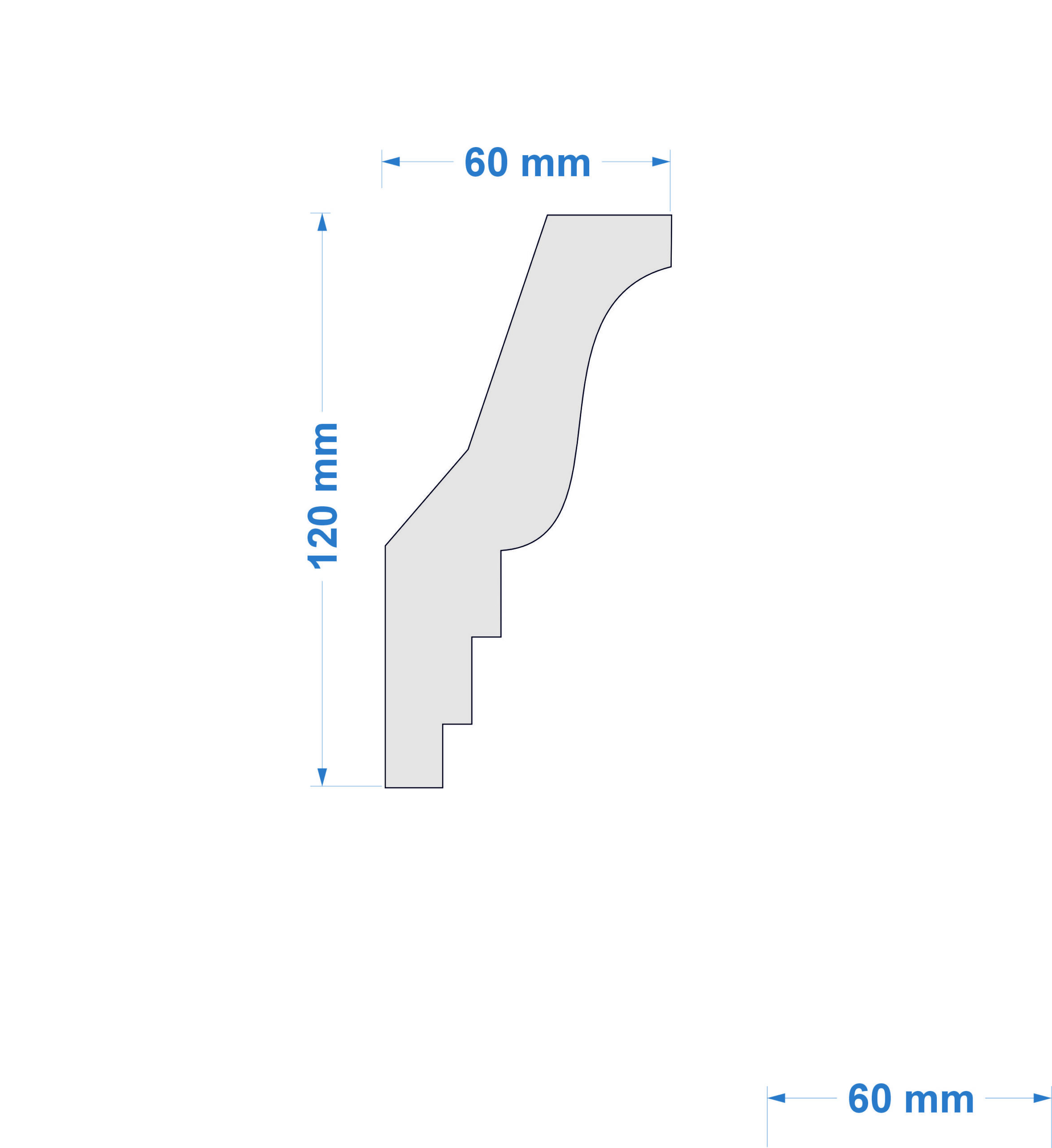 Listwa przysufitowa – wymiary: 120 mm x 60 mm x 2000 mm
