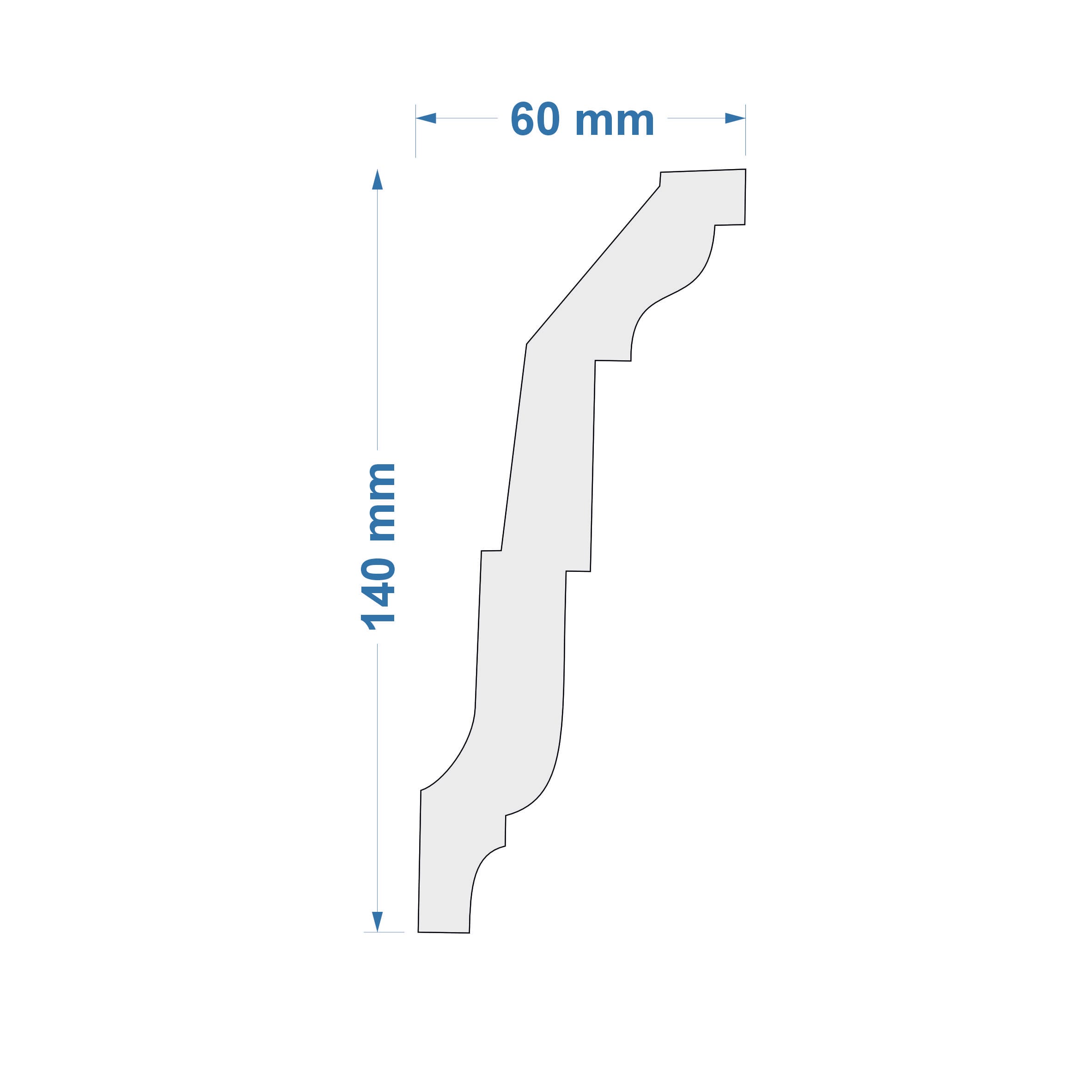 Listwa przysufitowa – wymiary: 140 mm x 60 mm x 2000 mm