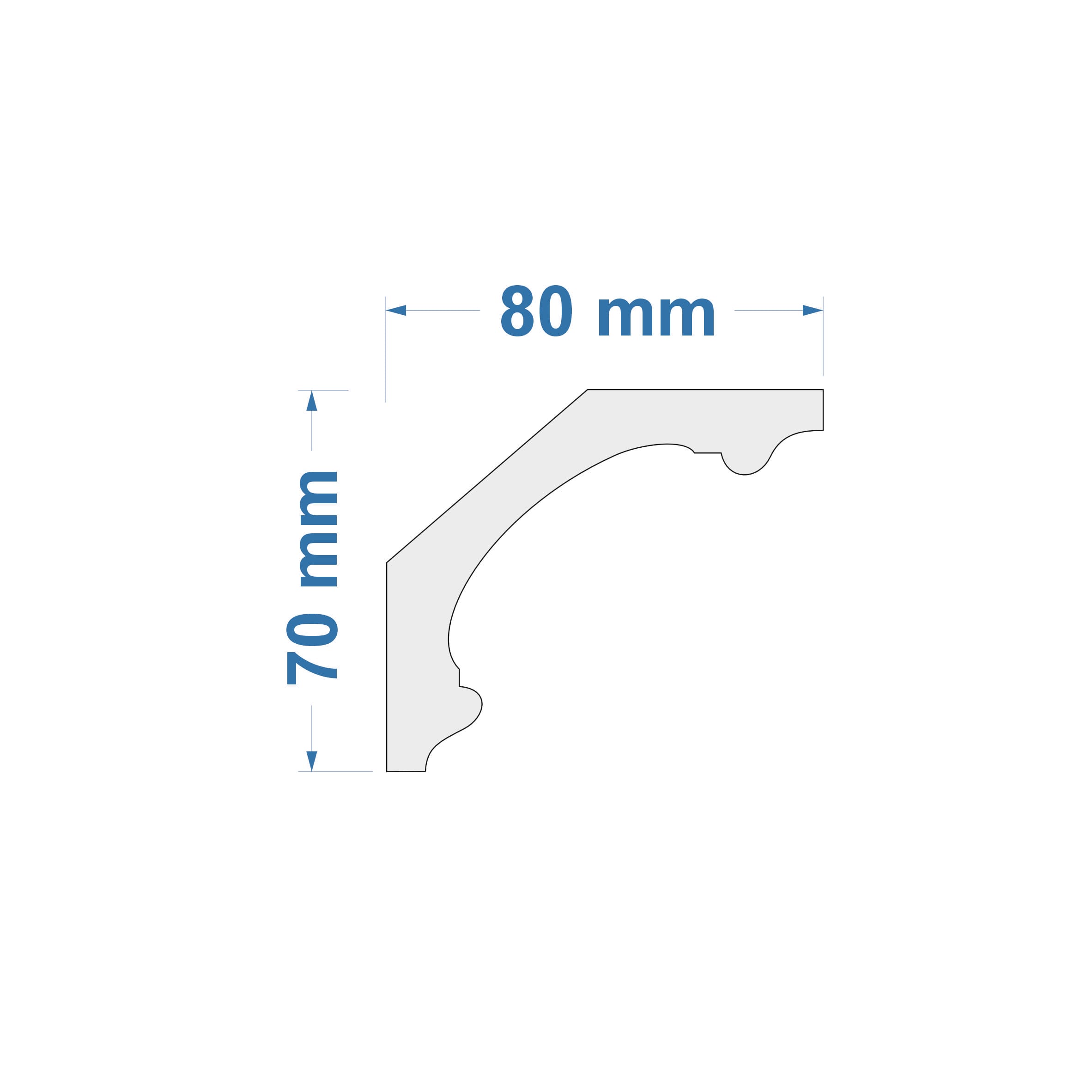 Listwa przysufitowa – wymiary: 80 mm x 70 mm x 2000 mm