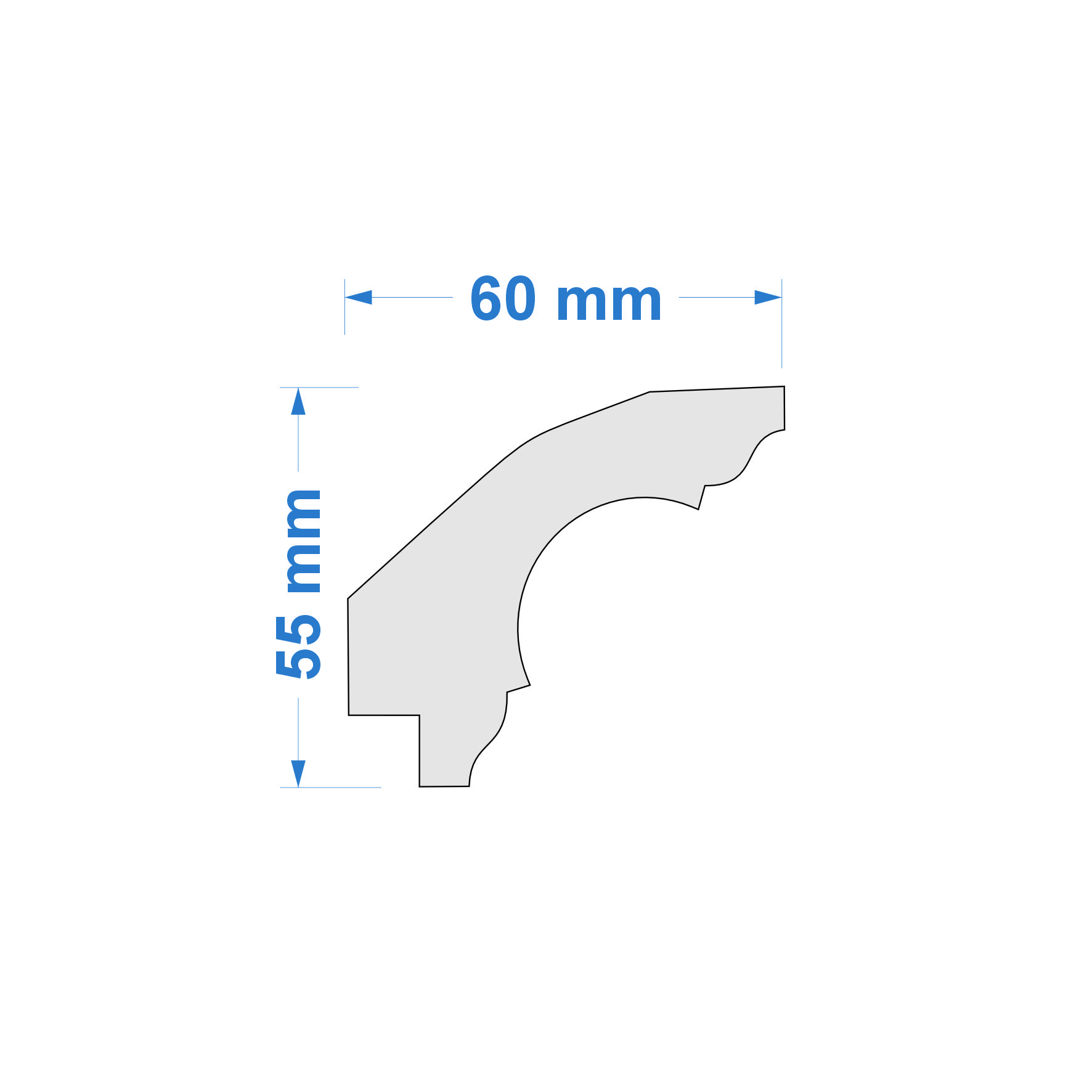 Listwa przysufitowa – wymiary: 60 mm x 55 mm x 2000 mm