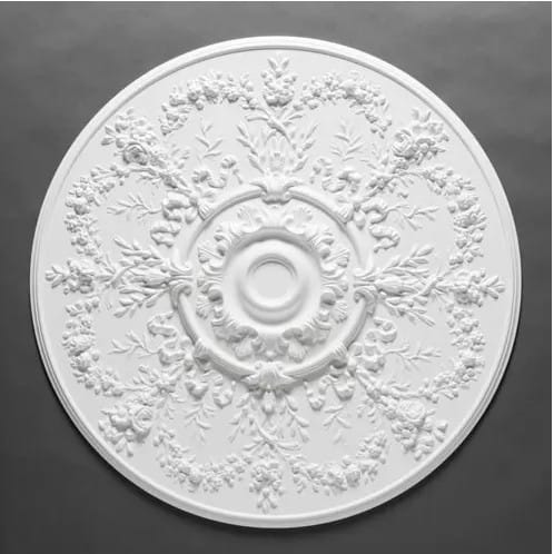 Rozeta wykonana jest z poliuretanu – materiału odznaczającego się lekkością, równocześnie trwałością i wysoką estetyką. Jest odporna na działanie wilgoci.
