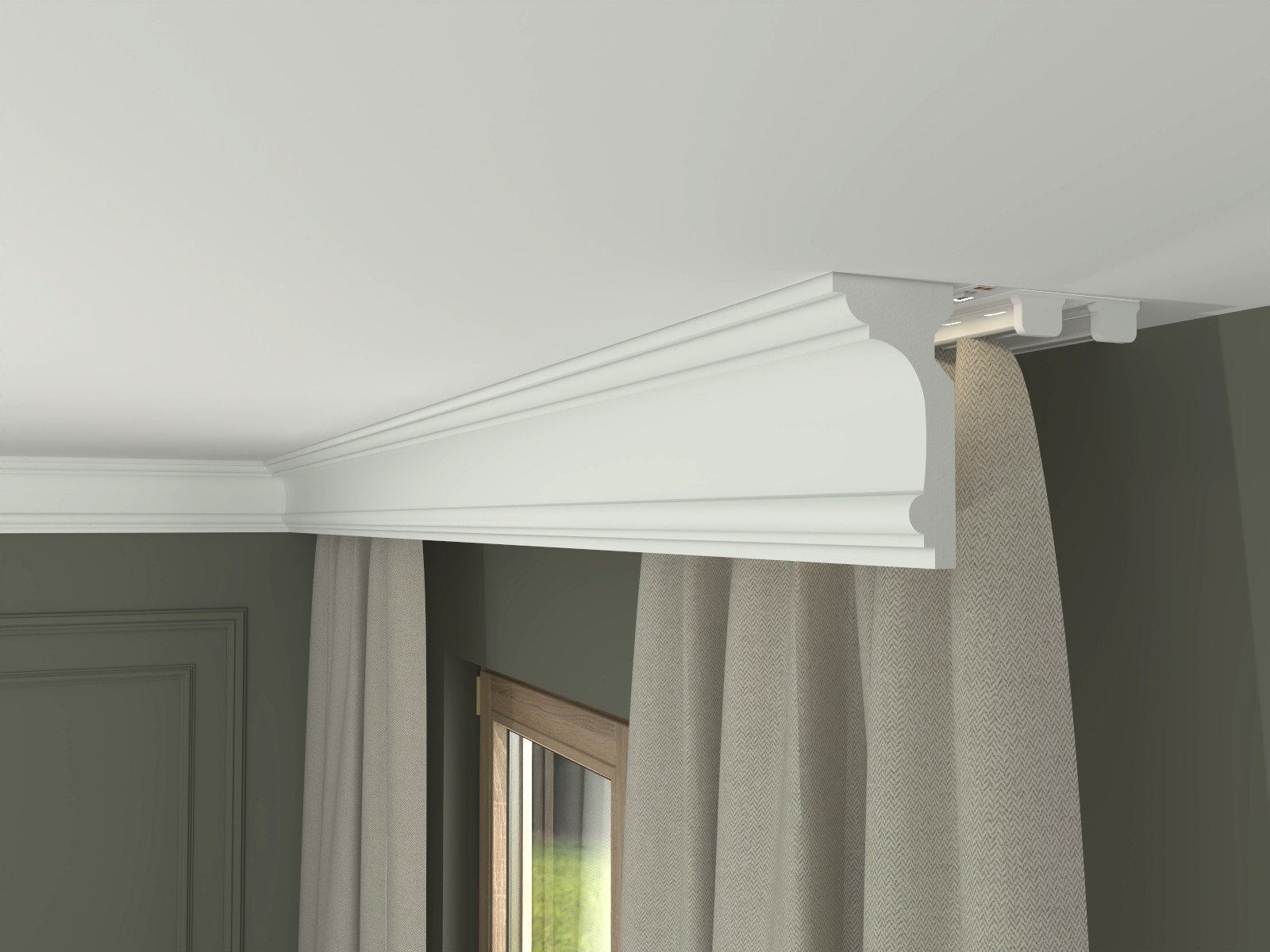 Model najczęściej stosowany w klasycznych wnętrzach, jako dekoracyjna maskownica szyny karniszowej. Charakteryzuje się precyzją wykonania, wyraźnymi wzorami i zdobieniami. Podkreśli charakter wnętrza, będzie uzupełnieniem estetycznego wyposażenia. Sprawdzi się jako eleganckie uzupełnienie wystroju okna. Zastosowana z razem z Listwą przysufitową LKS-120 tworzy ramę elegancko zwieńczającą ściany na styku sufitu.
