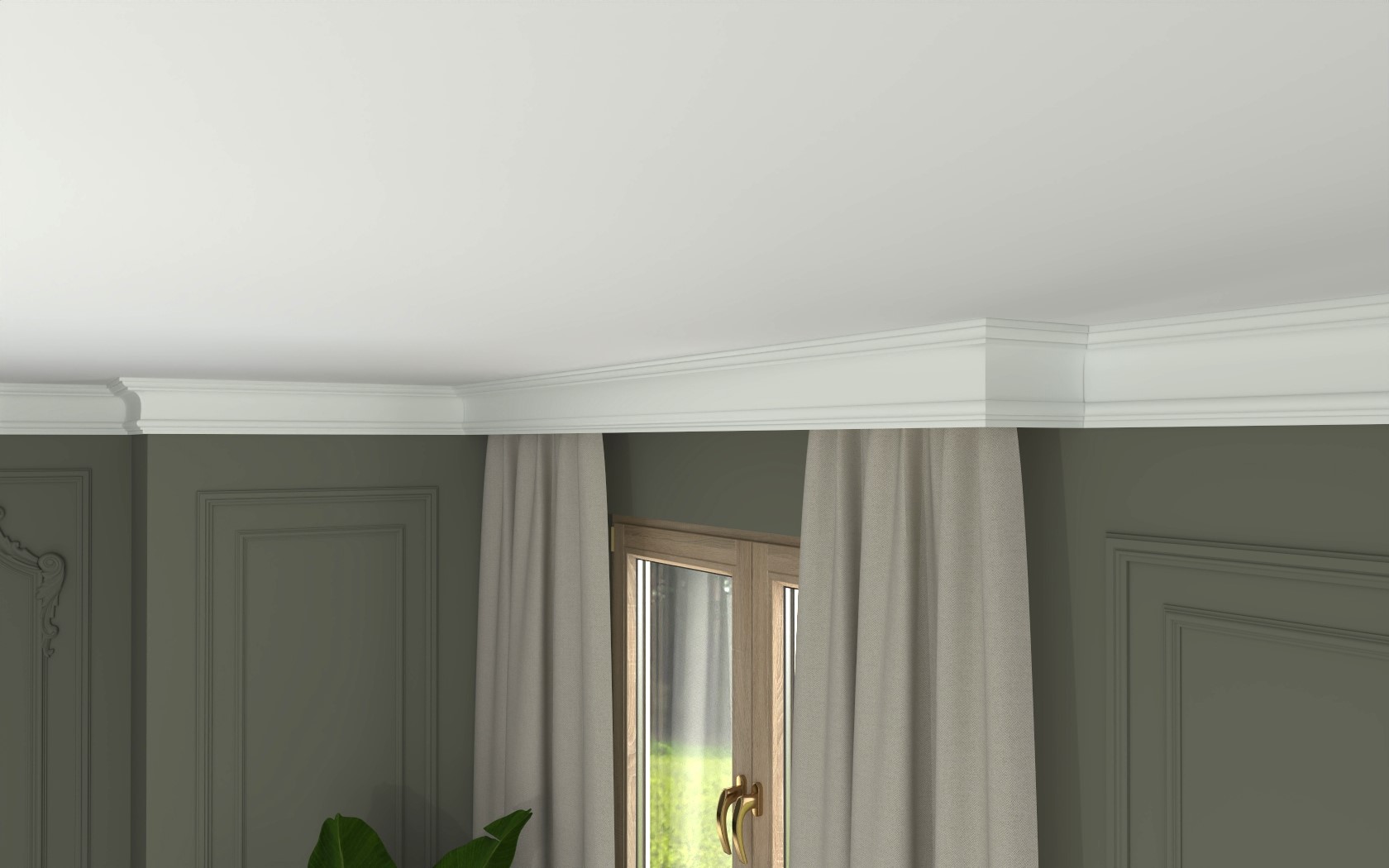 Model najczęściej stosowany w klasycznych wnętrzach, jako dekoracyjna maskownica szyny karniszowej. Charakteryzuje się precyzją wykonania, wyraźnymi wzorami i zdobieniami. Podkreśli charakter wnętrza, będzie uzupełnieniem estetycznego wyposażenia. Sprawdzi się jako eleganckie uzupełnienie wystroju okna. Zastosowana z razem z Listwą przysufitową LKS-120 tworzy ramę elegancko zwieńczającą ściany na styku sufitu.