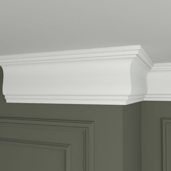 Sztukateryjna listwa karniszowa LK-310 to lekka, biała listwa wykonana z twardego polistyrenu ekstrudowanego.